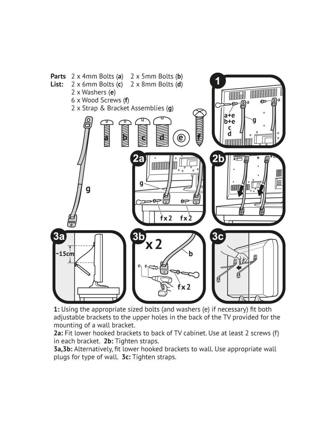 Provisto de un juego completo de tornillos alternativos para adaptarse a cualquier televisor.
