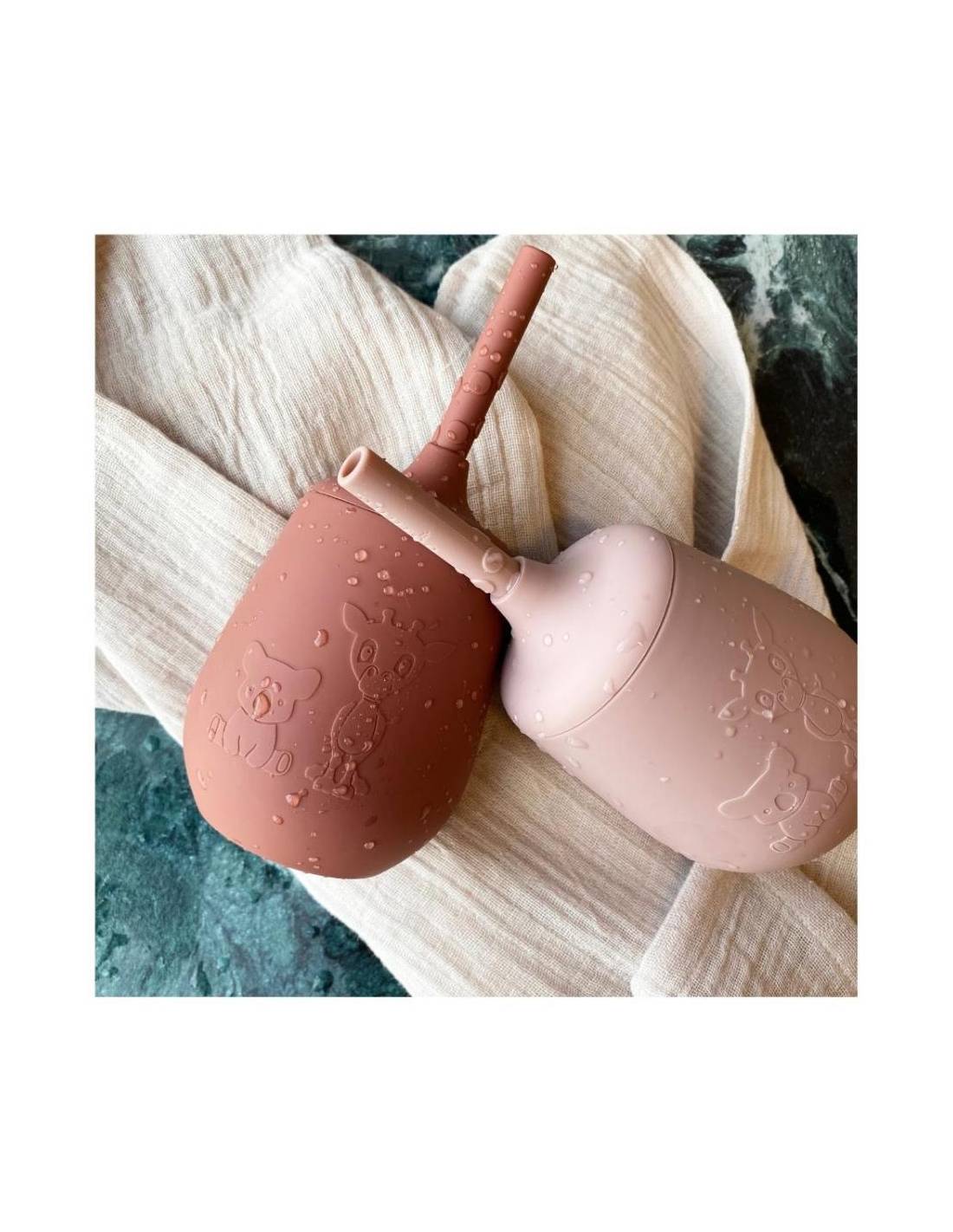 La taza y la cañita están hechas de silicona LFGB suave y son seguras para que su hijo las muerda.